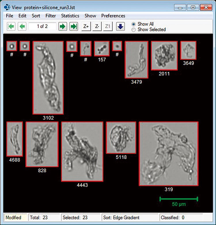 | アプリケーション | 様々な溶液中粒子の粒度分布と形状解析(バイオ医薬品中の不溶性微粒子の評価等) |