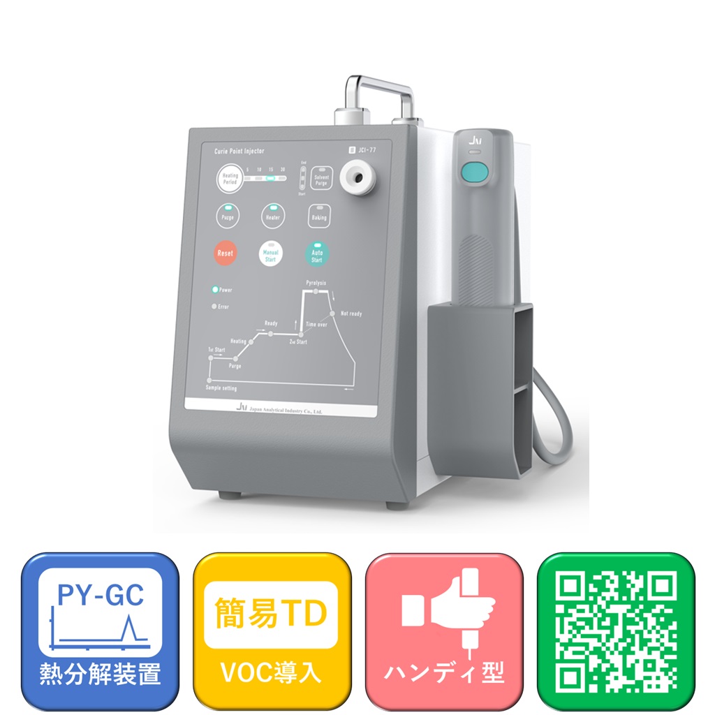 | 説明 | 世界初!ポータブルタイプのキューリーポイントパイロライザー(インジェクター)です。 使いやすさはそのままに定量性・再現性を向上したJCI-77が新登場! GC,GC/MSへの熱分解導入はもちろん、サンプルからの発生ガス導入、吸着剤入りの試料管を用いての雰囲気ガスや匂い成分などの揮発性有機化合物の導入も可能です。 いままでの熱分解装置の概念を覆す据付いらずのポータブルタイプ。マイクロシリンジと同様の動作で、固体・液体・発生ガス・VOC試料等をGC,GC/MSに導入できるインジェクターでGC,GC/MSを選びません! 試料室の予備加熱温度が250℃(従来機は150℃)となり、定量性・再現性が向上しました。 また、便利な機能として、従来の試料管ベーキングモード(吸着剤入り試料管の焼き出し)、ソルベントパージモード(溶媒成分を飛ばす)も搭載。 オプションのエアーサンプラJAS-50MPやPFA捕集チャンバーを使えば、大気捕集や不活性ガス中での発生ガス捕集も可能です。 【特長】 ■片手で持てるコンパクトサイズ、手軽にGC,GC/MSへの導入が可能 ■オプションのmini-PAT(吸着剤Tenax入り試料管)とエアーサンプラ JAS-50MP(mini-PATフィッティング付)を使用することで、VOCや匂い成分の捕集が可能 また、PFA捕集チャンバーやフローコントローラFWC-77により不活性ガス下での発生ガス捕集が可能 ■ニードル、試料管は都度交換可能で、前試料のコンタミを残しません。 【仕様】 ●試料加熱方式:キューリーポイント加熱方式 ●試料加熱温度:160℃~1,040℃(パイロホイルを選択) ●試料加熱時間:最大30sec ●プローブ部寸法(mm):外径38×160 ●プローブ部質量:110g ●コントローラ部寸法(mm):140(W)×246(H)×347(D) ●コントローラ部質量:7kg |