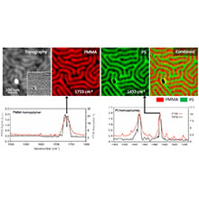 | 説明 | AFMチップの先端に赤外光を照射し、サンプル-チップ間に生じるダイポール力を検出することで、ナノスケールでの赤外分光分析を行う画期的なナノスケールケミカルイメージング顕微鏡です。新方式のPhoto-induced Force Microscopy、通称【PiFM】を採用する世界唯一の装置です。実績値で空間分解能10nmを誇ります。 また、抜群の表面感度を持っているため、サンプルの最表層を観察します(深いところのシグナルを読みません)。サンプル準備に特別な処理が必要ありません。通常のAFM測定が可能なサンプルであればすぐに測定開始できます。 さらに、高速スペクトルが取得可能なことにより、視野内全ピクセルでフルスペクトルを取得するハイパースペクトラルマッピング機能が搭載されており、研究を大きくサポートします。 |