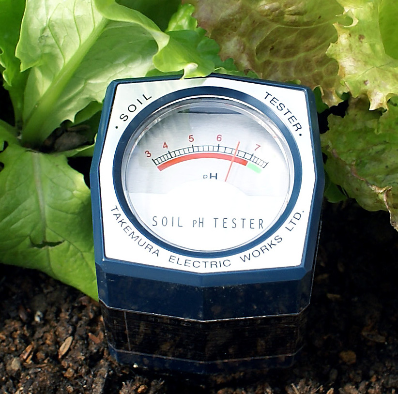| 説明 | 土壌に直接挿入するだけで土壌のおおよそのpHを測定できます。2極の金属を土壌に挿入すると土中の水分と反応し起電して測定するため、電池の必要はありません。土壌の水分量が測定値に影響しますので、まず土壌湿度を測り測定条件を揃えることで、より正しく測定できます。湿度計付きはDM-5型、DM-15型。 測定範囲:3.5~7.0pH 最少目盛:0.2pH 本体寸法:50φ×165mm 本体重量:156g |