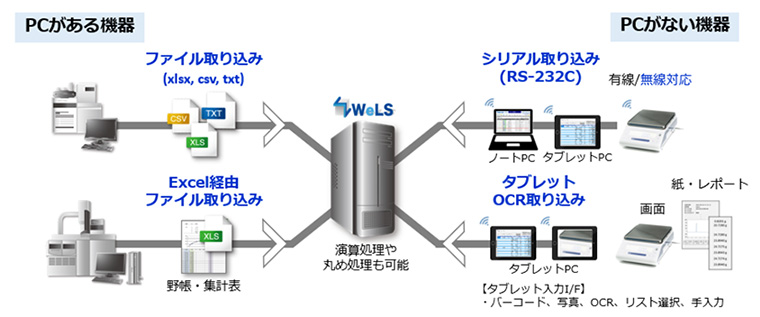 | 説明 | WeLSは、製造業の品質管理部門、研究開発部門や、様々な分野における試験検査機関のお客様にヒアリングを行い、その業務実態に合わせて設計、開発した “Webベース” のシステムです。 ITと試験の知識を有したエンジニアにより、試験機器からネットワークシステムまでトータル提案を行います。お客様の業務に合わせることが出来る柔軟な設定機能により、試験業務のデジタル化を円滑かつ迅速に実現します。 |
