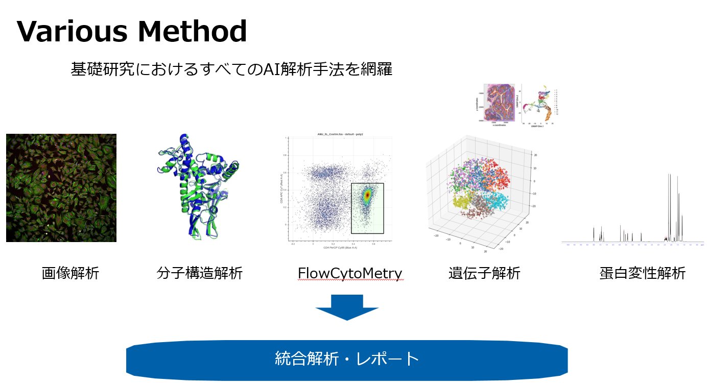 | アプリケーション | 画像解析、遺伝子解析、フリーサイトメトリー解析、蛋白変性解析、分子構造解析、それらの統合解析 |