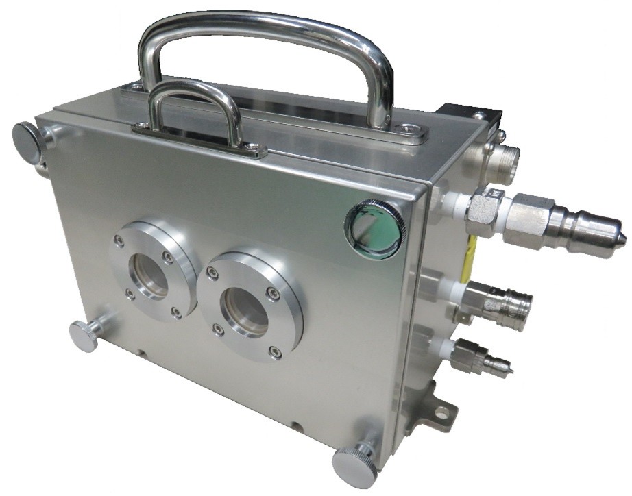 | 説明 | 本製品は、テラヘルツ分光装置『TeraProspecor』に搭載可能な透過測定用加熱ステージUNITです。 試料部分は断熱のため、真空に引いて使用します。真空引きは試料をセットした後に手動にて行ない、真空で封じ切ったUNITを試料室にセットして測定します。 温度は試料を接触させる金属部の温度をモニターし、電熱ヒーターより制御します。 排熱用にチラーを使用し、冷却水を循環して使用します。 |